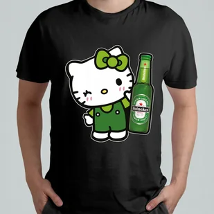 CZARNA KOSZULKA Z NADRUKIEM MĘSKA ŚMIESZNA T-SHIRT HELLO KITTY HEINEKEN PIW
