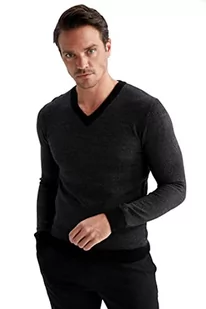 DeFacto Męski sweter z dzianiny z długim rękawem okrągły dekolt - slim fit sweter dla mężczyzn topy (czarny, XL), czarny, XL