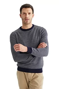 DeFacto Męski sweter z dzianiny z długim rękawem okrągły dekolt - slim fit sweter dla mężczyzn topy (granatowy, M), grantowy, M