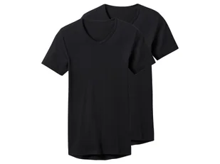 esmara Men Podkoszulki męskie z bawełny, 2 sztuki (Dekolt w kształcie litery V, Czarny, 5/M)