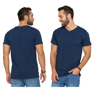 Granatowa Koszulka Męska T-shirt Serek Slim Fit r. XXL