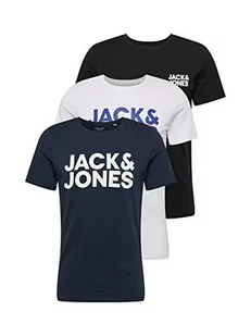 JACK & JONES Męski T-shirt 3-pak klasyczny nadruk logo, czarny, L