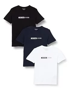 JACK & JONES T-shirt męski, Czarny/opakowanie: czarny + granatowy+biały, L