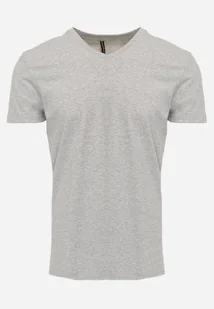 Jasnoszara Koszulka T-shirt z Bawełny z Dekoltem w Serek Rionisse