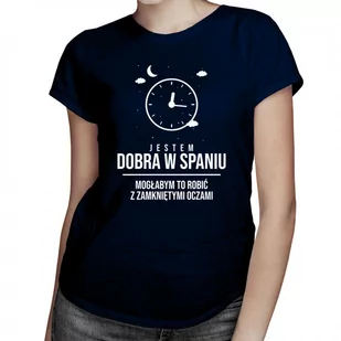 Jestem dobra w spaniu, mogłabym to robić z zamkniętymi oczami - damska koszulka z nadrukiem