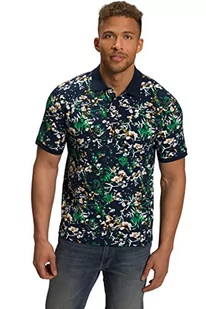 JP 1880 Męska koszulka polo, z rękawami do łokci i kwiatowym nadrukiem, matowa granatowa, XL, Matowy niebieski, XL
