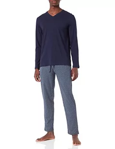 KAJYY Męski zestaw piżamy Eze Long Sleepwear Top: barokowy granatowy i fluorescencyjny żółty nadruk, spód: granatowy, gładki, S