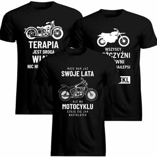 Komplet dla motocyklisty - Wszyscy mężczyźni równi + Wiatr nic nie kosztuje + Może mam już swoje lata - koszulki z nadrukiem