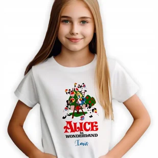 KOSZULKA BIAŁA DZIECIĘCA Na Prezent ALICJA W KRAINIE CZARÓW IMIĘ Wzory 86