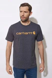 Carhartt Męska koszulka z długim rękawem o luźnym kroju z grafiką z logo, grantowy, XS
