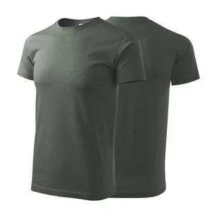 Koszulka ciemny khaki z krótkim rękawem z logo na sercu i plecach męska z nadrukiem logo firmy 160g BASIC129 kolor 67 koszulka krótki rękaw