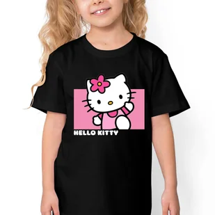 KOSZULKA CZARNA Dziecięca Bawełniana Kotek HELLO KITTY Wzory - 146