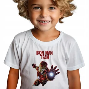 Koszulka Dziecięca Biała IRON MAN TEAM Superbohaterowie Wzory - 134-140 cm