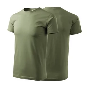 Koszulka khaki z krótkim rękawem z logo na sercu i plecach męska z nadrukiem logo firmy 160g BASIC129 kolor 09 koszulka krótki rękaw