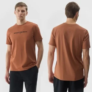 Koszulka Męska 4F T-shirt Sportowy Brązowy z nadrukiem Regular Bawełna XL