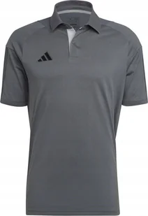 Koszulka męska adidas Tiro 23 Competition Polo szara HU1344 Męska koszulka adidas sprawdzi się gdy odpoczywasz poza linią boczną boiska lub wyjeżdżasz z drużyną na kolejny mecz. Paski na ramionach. Wyszywane logo na piersi. Model pochodzący z linii Tiro. Kołnierzyk i listwa z guzikami.