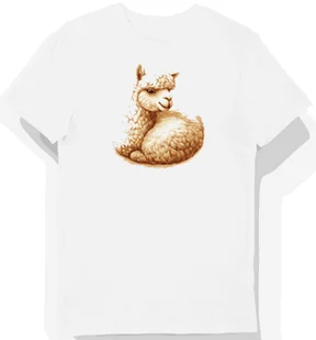 Koszulka męska biała z motywem odpoczywającej alpaką w beżowym futrze XL - Koszulka męska idealna na prezent! KozakNadruki – Polska marka i autorskie projekt...