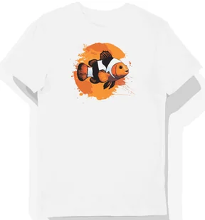 Koszulka męska biała z motywem pomarańczowej ryby w paski S - Koszulka męska idealna na prezent! KozakNadruki – Polska marka i autorskie projekty! Stawiając ...