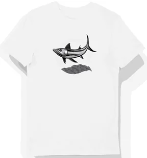 Koszulka męska biała z motywem srebrnej barakudy w polu L - Koszulka męska idealna na prezent! KozakNadruki – Polska marka i autorskie projekty! Stawiając na...
