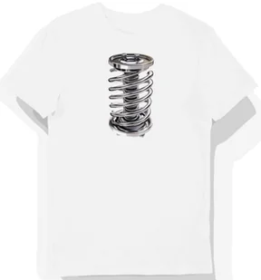 Koszulka męska biała z motywem srebrnych sprężyn zawieszenia XL