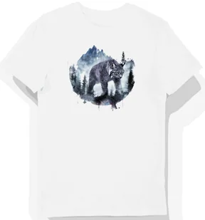 Koszulka męska biała z motywem szarego rysia w górach S - Koszulka męska idealna na prezent! KozakNadruki – Polska marka i autorskie projekty! Stawiając na K...
