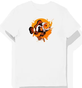 Koszulka męska biała z nadrukiem pomarańczowej ryby w paski XL - Koszulka męska idealna na prezent! KozakNadruki – Polska marka i autorskie projekty! Stawiaj...