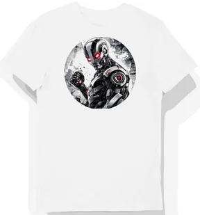 Koszulka męska biała z nadrukiem srebrnego robota S - Koszulka męska idealna na prezent! KozakNadruki – Polska marka i autorskie projekty! Stawiając na Kozak...