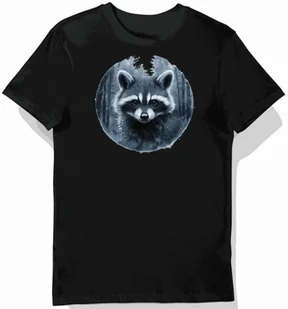 Koszulka męska czarna z motywem maskowanego szopa w leśnym cieniu XXL - Koszulka męska idealna na prezent! KozakNadruki – Polska marka i autorskie projekty! ...