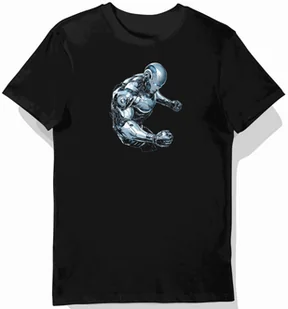 Koszulka męska czarna z motywem srebrnego cyberbohatera L - Koszulka męska idealna na prezent! KozakNadruki – Polska marka i autorskie projekty! Stawiając na...