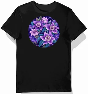 Koszulka męska czarna z motywem tropikalnym fioletowych kwiatów 3XL - Koszulka męska idealna na prezent! KozakNadruki – Polska marka i autorskie projekty! St...