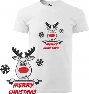 KOSZULKA MĘSKA ŚWIĄTECZNA RENIFER BIAŁA L KRÓTKI RĘKAW HAFT PREZENT BAWEŁNA