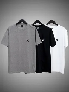 KOSZULKA MĘSKA Zestaw 3 SZT T-SHIRT POINT X KOLORY Czarny Biały Szary L