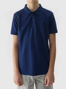 Koszulka polo bawełniana 100% gładka chłopięca 4F 4FJWSS24TPTSM124-31S Granatowy