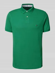 Koszulka polo męska T. HILFIGER SPW.;Mieszanka bawełny z dodatkiem streczu;Krój regular fit;Wyhaftowane logo;Kołnierzyk polo;Rozcięcia po bokach;Krótka listwa guzikowa;Długość tyłu w rozmiarze M: 75 cm