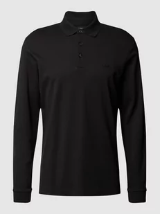 Koszulka polo męska BOSS;Czysta bawełna;Prosty krój;Kołnierzyk polo;Model ‘Pado 30’;Krótka listwa guzikowa;Design z długim rękawem;Z napisem z logo;Zakończenia rękawów z prążkowanego ściągacza;Długość tyłu w rozmiarze L: 76 cm