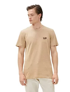 Koton Koszulka męska w paski z krótkim rękawem i okrągłym dekoltem, beżowy (052), XXL