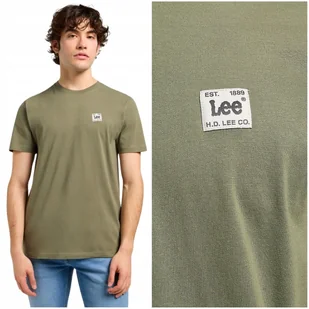 █ Lee Regular Tee Woven Label Mercantile Green BAWEŁNIANA KOSZULKA Z NASZYWKĄ Z LOGO rozmiar XL █ T-shirt firmy Lee Model: Regular Tee Woven Label z kolekcji Premium Quality since 1889 Krój klasyczny, regular fit Kolor: zieleń khaki z biało - czarną naszywką z logo z przodu (mercantile green) Bawełna bez dodatku streczu Wash (kod producenta): 112370444 - Rozmiar XL szerokość pod pachami: 63 cm szerokość w ramionach: