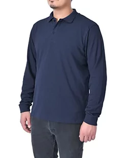 M17 Męska klasyczna jednokolorowa koszulka polo z długim rękawem bawełniana koszulka top sport na co dzień praca, granatowy, S