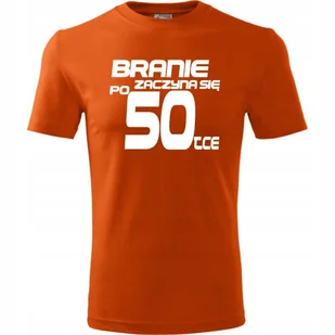 Męska Koszulka Nadruk branie zaczyna się po 50 Super Prezent na Urodziny pomarańczowy 4XL O koszulce męskiej 100 % ekologicznej bawełny wzmocnienie na ramion...