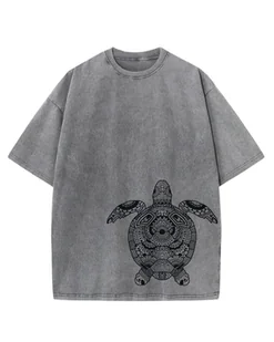 Męska koszulka oversize efekt sprania Zwierzęta Żółw Wzorzysty Grafitowa XL