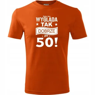 Męska Koszulka z Nadrukiem mało kto wygląda tak dobrze po 50 na Prezent pomarańczowy L O koszulce męskiej 100 % ekologicznej bawełny wzmocnienie na ramionach...