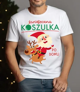 Męska koszulka z reniferem i mikołajem mikolajki32