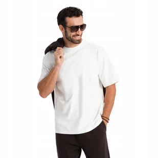 Męski bawełniany t-shirt kremowy wygodny luźny Ombre OM-TSBC-0234 V2 r. XXL