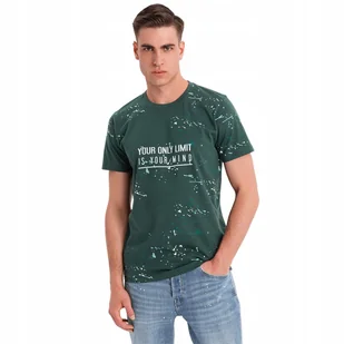 Męski t-shirt z nadrukiem i napisem zielony modny Ombre OM-TSFP-0187 V3 M Męski t-shirt polskiej marki Ombre to idealne połączenie komfortu i nowoczesnego st...