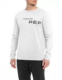 Replay Męska koszulka z długim rękawem, krój regular slim fit, 001 White, XXL