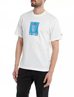 Replay Męski T-shirt z krótkim rękawem, okrągły dekolt z nadrukiem z tyłu, biały (Natural White 011), XXL, Natural White 011, XXL