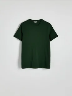 Reserved - Bawełniany t-shirt regular - ciemnozielony