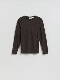 Reserved - Lniany longsleeve - ciemnobrązowy
