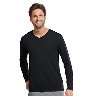 Schiesser Męska Koszulka z Długim Rękawem Mix Relax z Dekoltem w Kształcie Litery V, Górna Część Piżamy, Czarny (Schwarz 000), 50 Pl