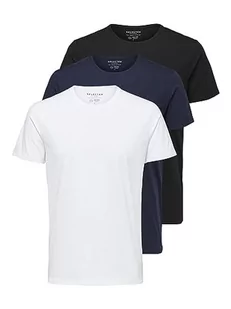 SELECTED HOMME BLACK T-shirt męski, Czarny/szczegóły: jasny biały + granatowy blezer, S